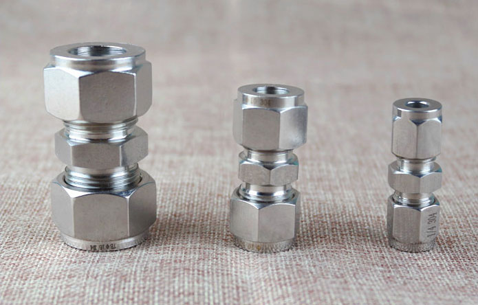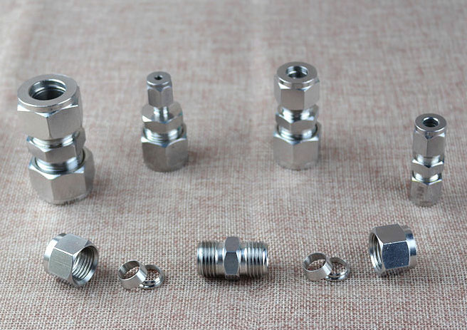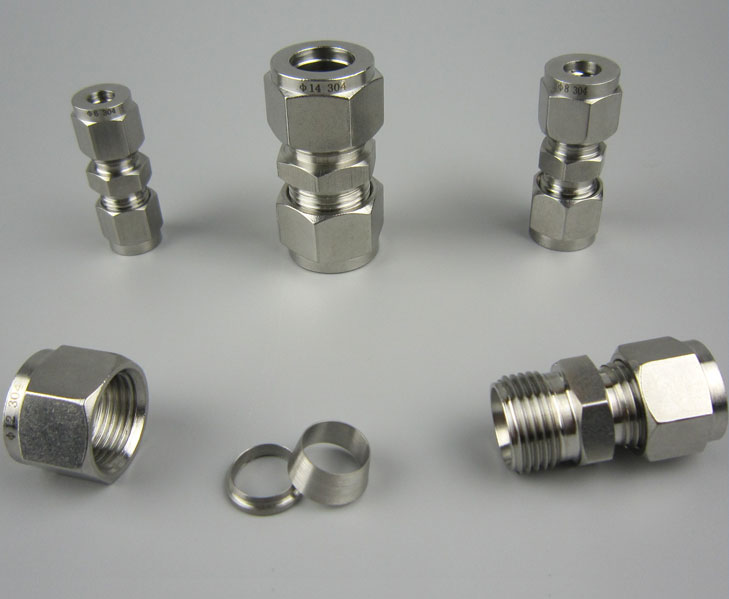 工作原理:是將鋼管插入卡套內(nèi),利用卡套螺母鎖緊,抵觸卡套,切入管子而密封。