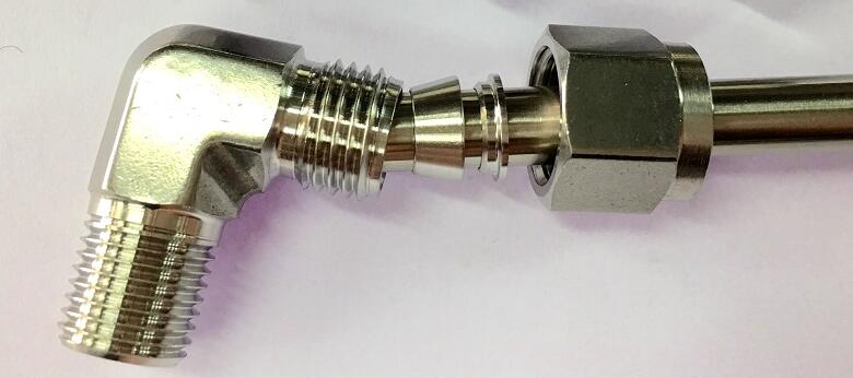 卡套接頭的工作原理是將鋼管插入卡套內(nèi),利用卡套螺母鎖緊,抵觸卡套,切入管子而密封。它與鋼管連接時不需焊接,有利于防火、防爆和高空作業(yè),并能消除焊接不慎帶來的弊端。因而它是煉油、化工、石油、天然氣、食品、制藥、儀器儀表等系統(tǒng)自控裝置管路中的一種較為先進的連接件。適用于油、氣、水等管路連接。